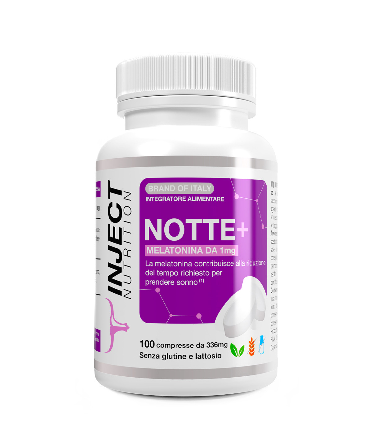 NOTTE+ è un integratore a base di melatonina, pensato per aiutarti ad addormentarti più rapidamente e a ritrovare un sonno regolare e profondo. È ideale nei periodi di stress, cambi di ritmo o jet lag.